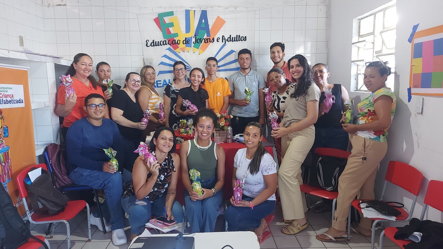 Serão desenvolvidos encontros presenciais e virtuais com intuito de capacitar nossos educadores na modalidade de Jovens e Adultos. Importante pontuar que as atividades estão em consonância com o projeto “Círculos de Cultura da EJA” desenvolvido pelo Ministério da Educação em parceria com Instituto Federal de Farroupilha. A nível local, o projeto está sendo conduzido pela coordenadora pedagógica da EJA, a Profa. Fátima Vieira e o Gestor Local do Brasil Alfabetizado, o Prof. Augusto Evangelista.