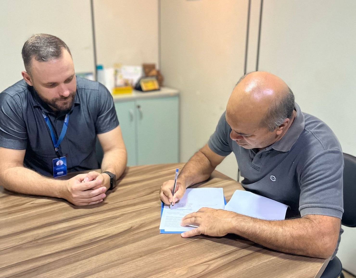 Na manhã da última sexta-feira (25), o Prefeito Benedito Braz, esteve reunido em seu Gabinete com o Consultor de Negócios do SENAI, Rômulo Farias para a assinatura do contrato de três cursos de qualificação profissional direcionados a população matinhense.