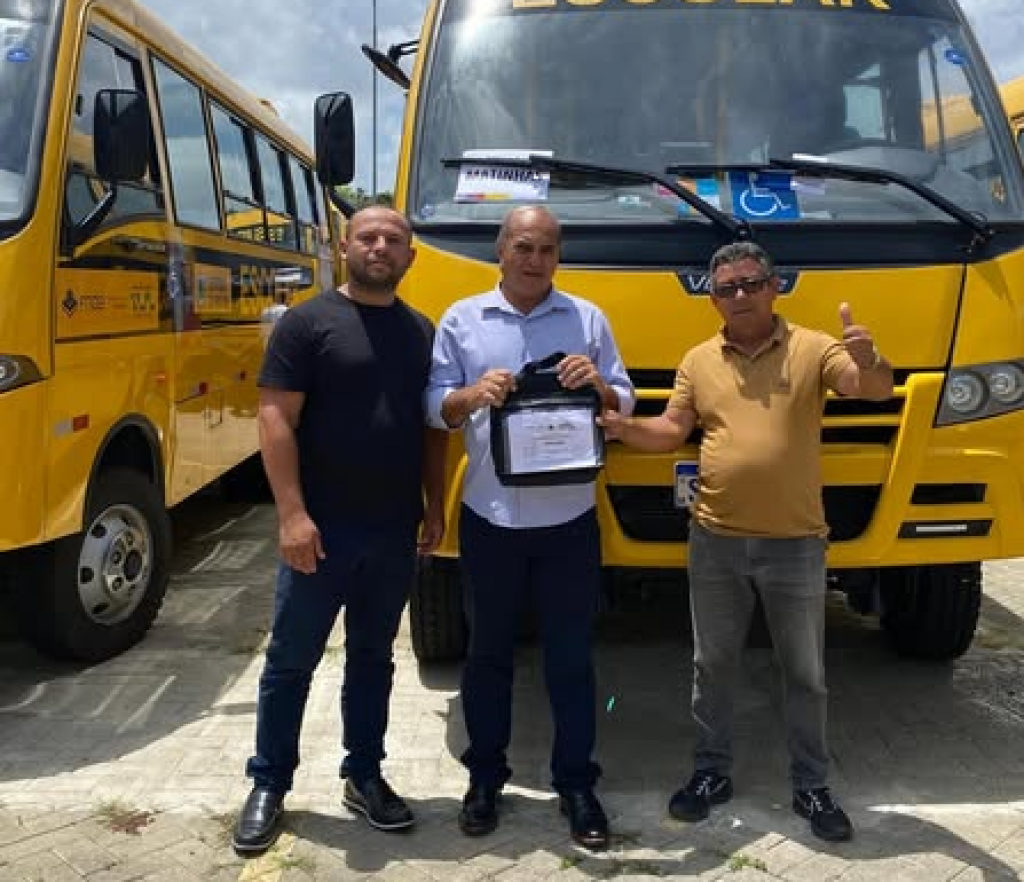 O prefeito de Matinhas, Benedito Braz , juntamente com o novo Secretário de Educação, Hélio Cobé, participaram na manhã desta quarta-feira (15), de uma solenidade no Centro de Convenções, em João Pessoa, onde receberam mais um ônibus escolar com capacidade para 26 lugares, equipado com ar-condicionado e acessibilidade. A entrega foi realizada pelo governador João Azevêdo, como parte do programa “Caminhos da Escola”, que tem como objetivo fortalecer o transporte escolar para estudantes da rede pública de ensino básico.